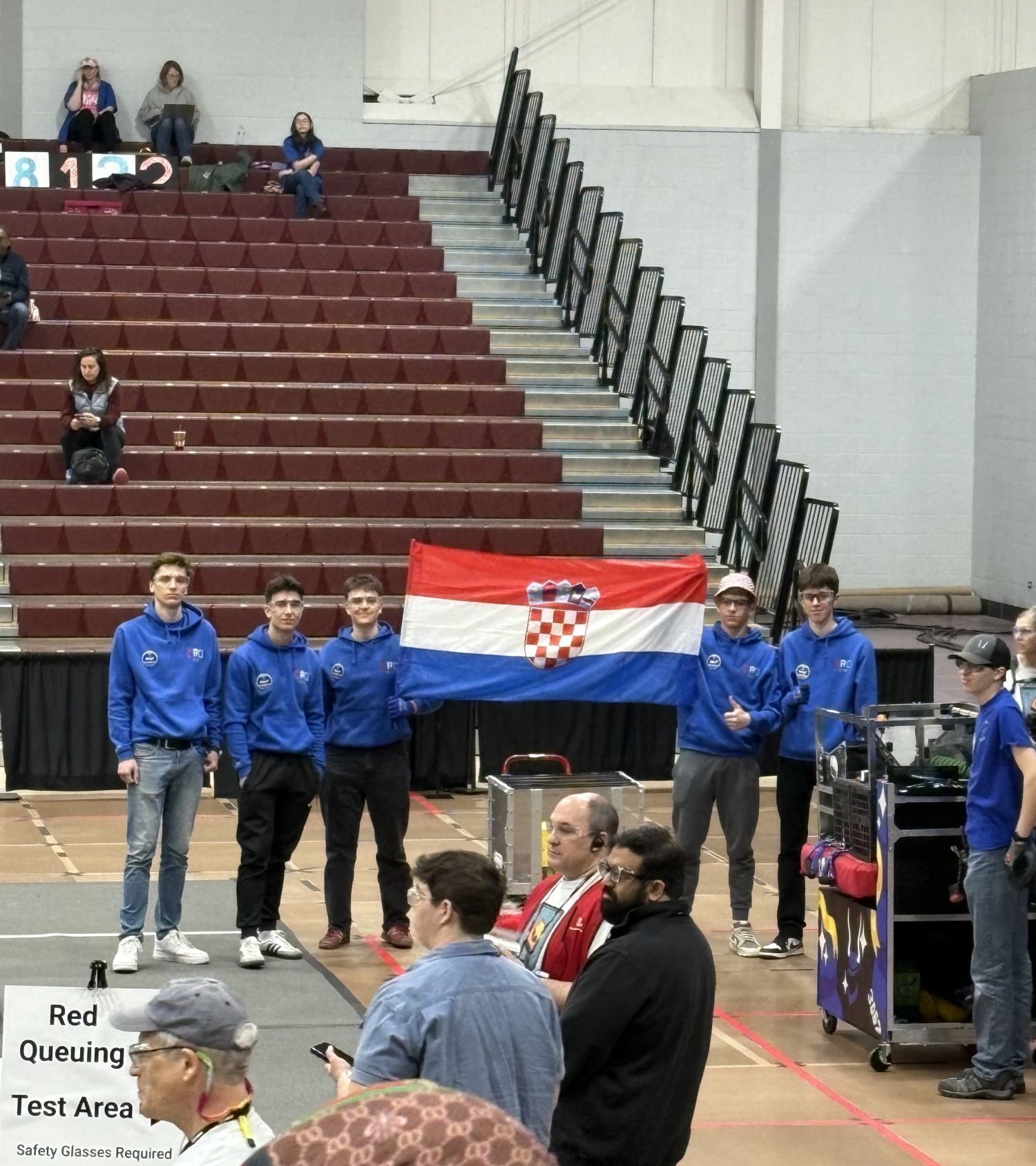 Današnji dan započeo je ranim ustajanjem. Dio ekipe spremio se i već je punom parom otišao u Taft High School kako bi pripremili dijelove robota za sastavljanje. Ostatak se pridružio ubrzo nakon te smo se svi zaputili u arenu gdje se održava natjecanje. Arena je bila prepuna različitim robotičkim timovima te je svaki tim imao svoj pit. Naš pit nije bio prepun stvarima za razliku od ostalih, koji su imali stolove, stolice, ormare i naravno pregršt alata. Nakon pozicioniranja uslijedilo je i konačno sastavljanje robota koji je radi puta bio rastavljen na dijelove.